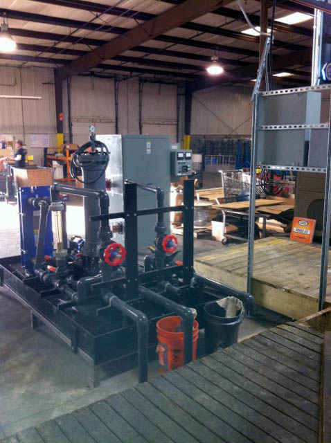 Designed and built by Anodizing Technologies, Inc. as a pre-piped unit, the system is mounted in a chemical resistant spill containment basin on a stainless steel frame.